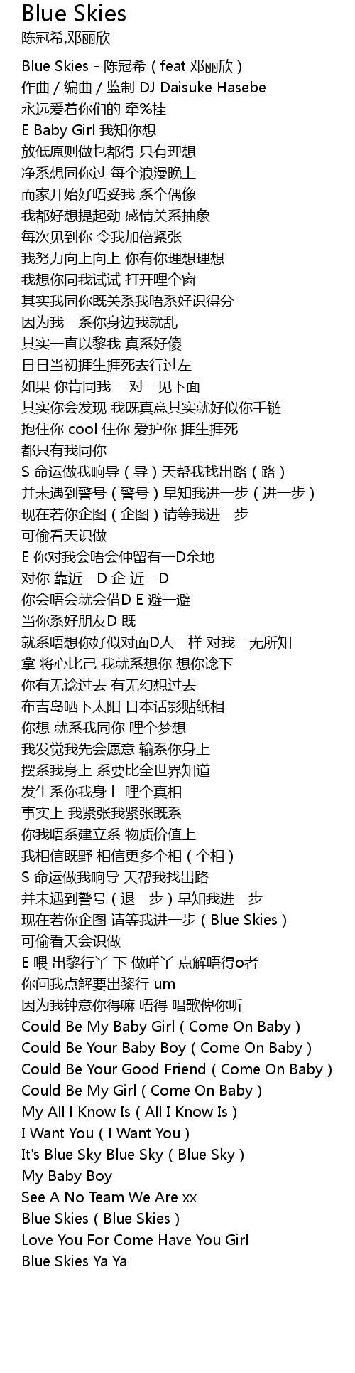 | [00:01.32] | Blue Skies - 陈冠希(feat 邓丽欣) |
