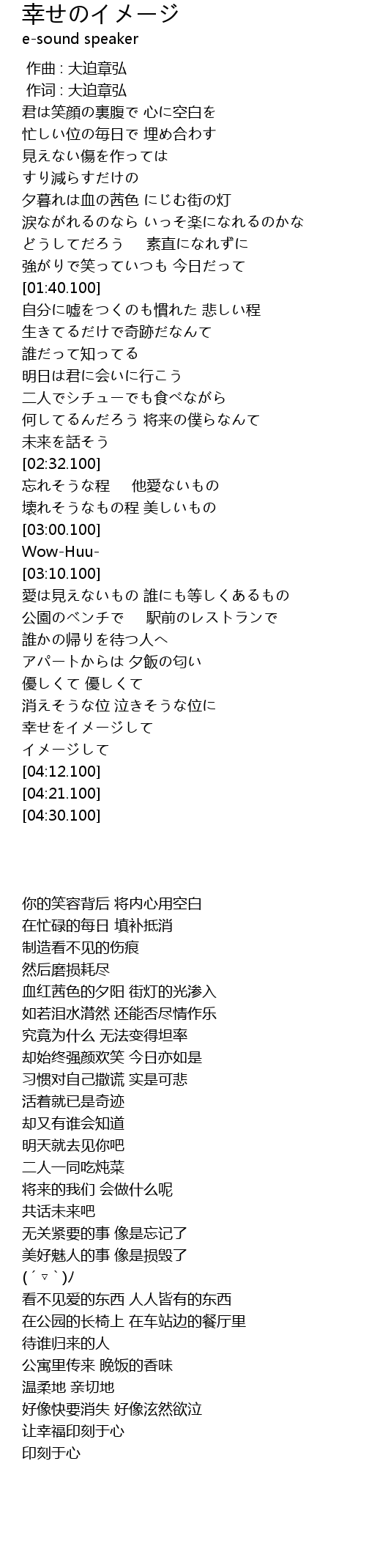 | [03:58.100] | 幸せをイメージして |