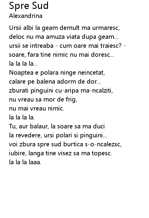 voi zbura spre sud burtica s-o-ncalezsc, |