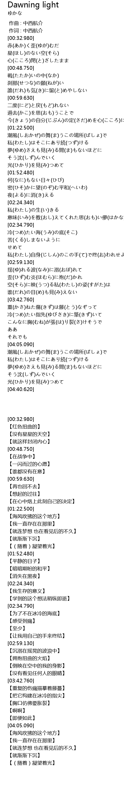 | [04:12.350] | 私(わたし)はそこにあり続(つず)ける |
