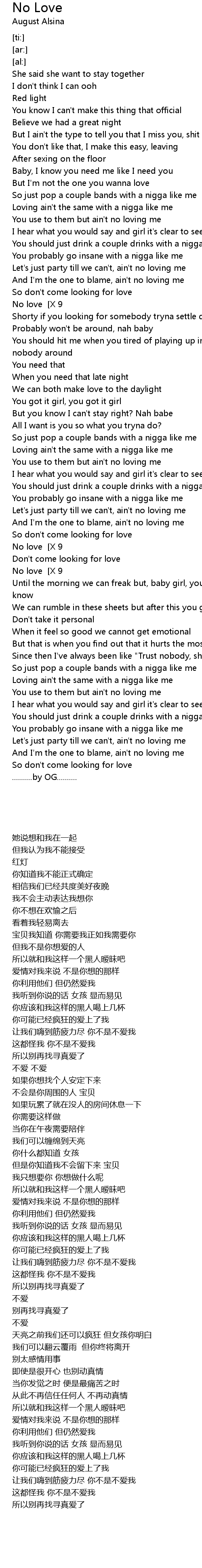 | [02:37.09]No love [X 9] |
