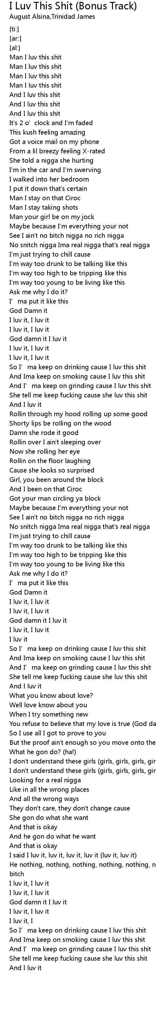 | [01:42.84] | She tell me keep fucking cause she luv this shit |