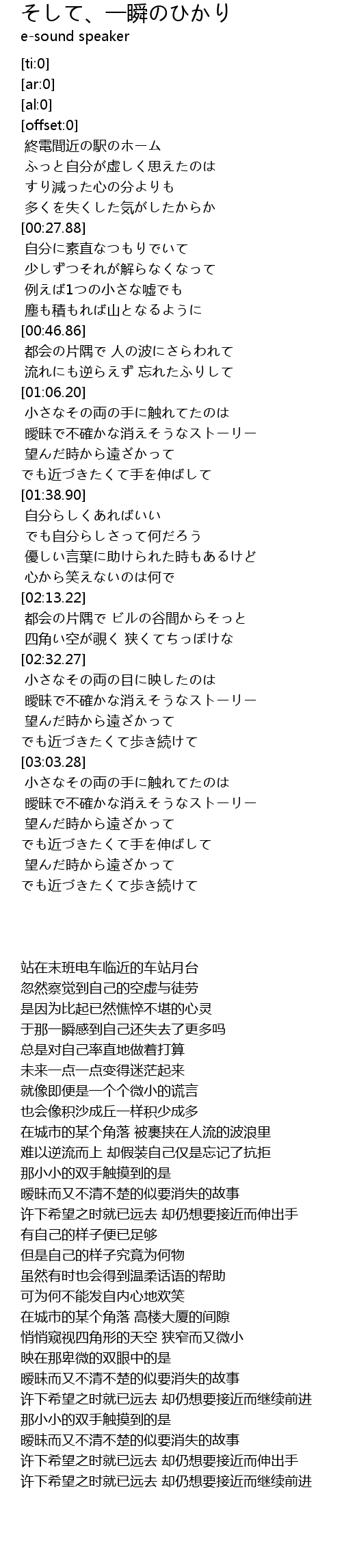 | [01:16.00] | 曖昧で不確かな消えそうなストーリー |