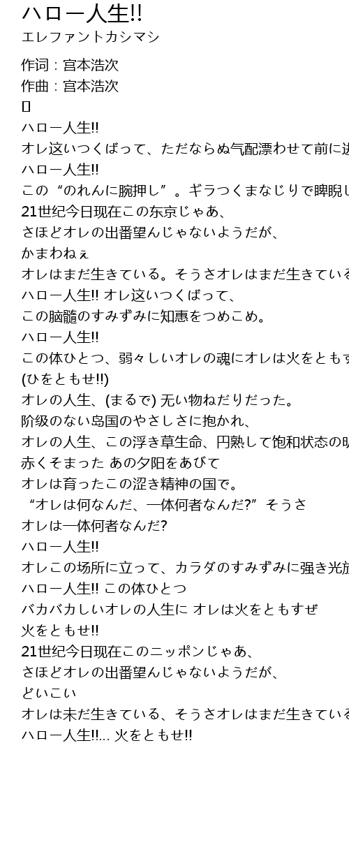 | ハロー人生!! オレこの场所に立って、カラダのすみずみに强き光放て | |