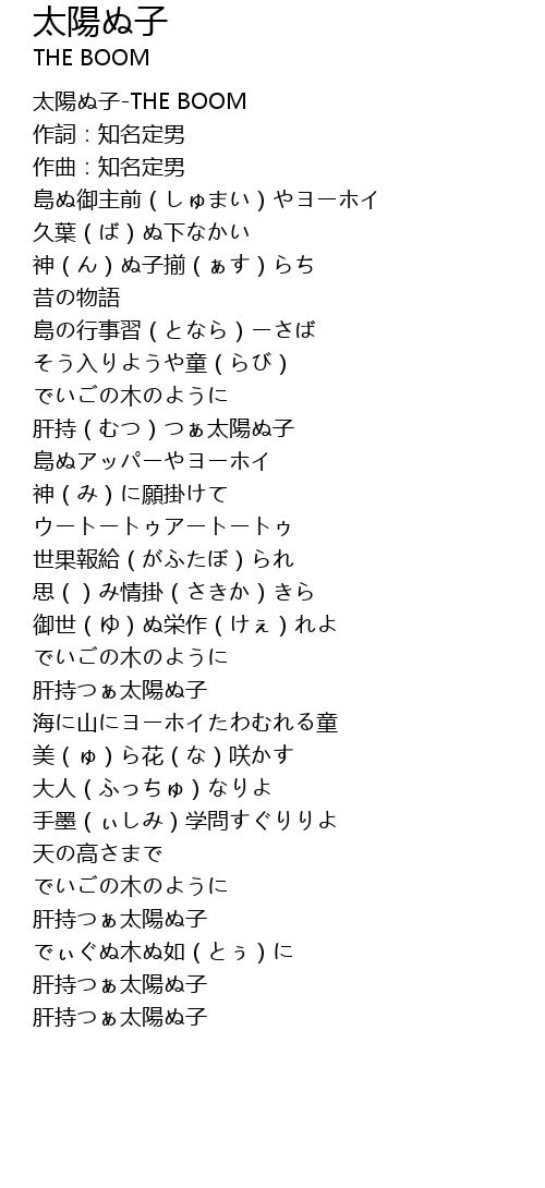 | [00:00.00] | 太陽ぬ子-THE BOOM |