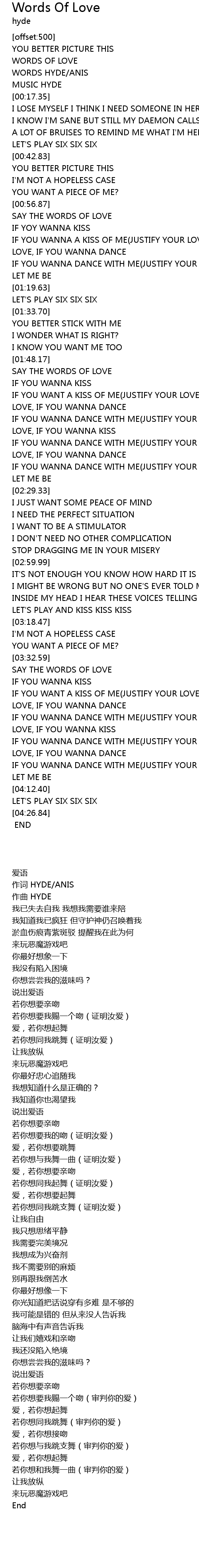 | [01:49.63] | SAY THE WORDS OF LOVE |