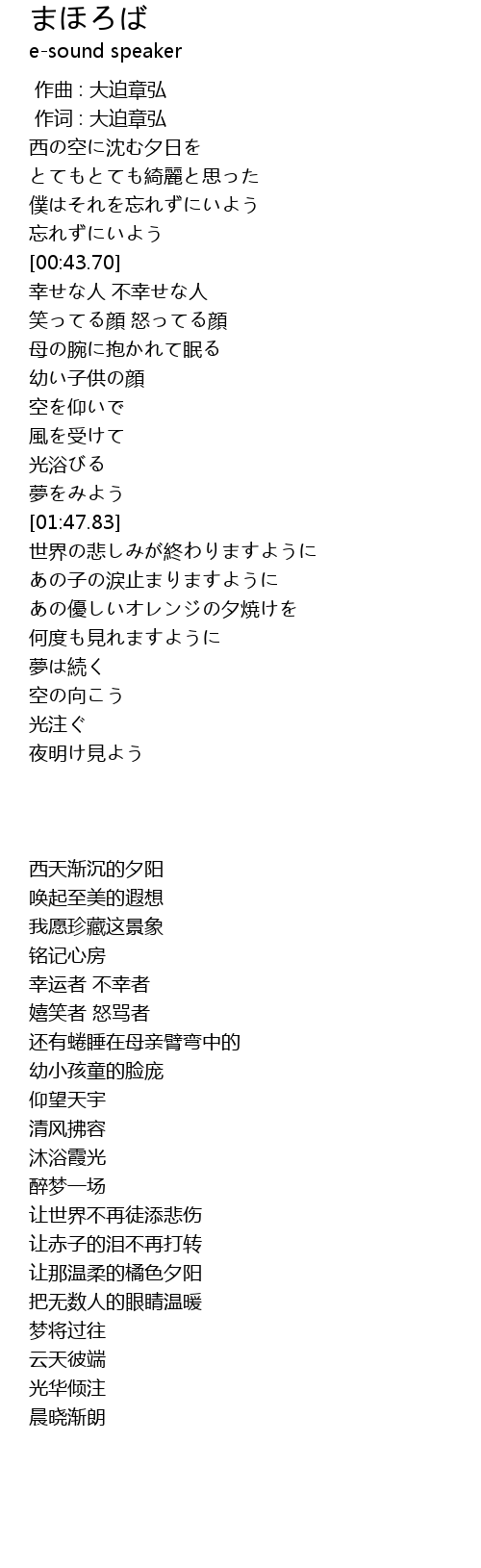 | [00:00.00] | 作曲 : 大迫章弘 |
