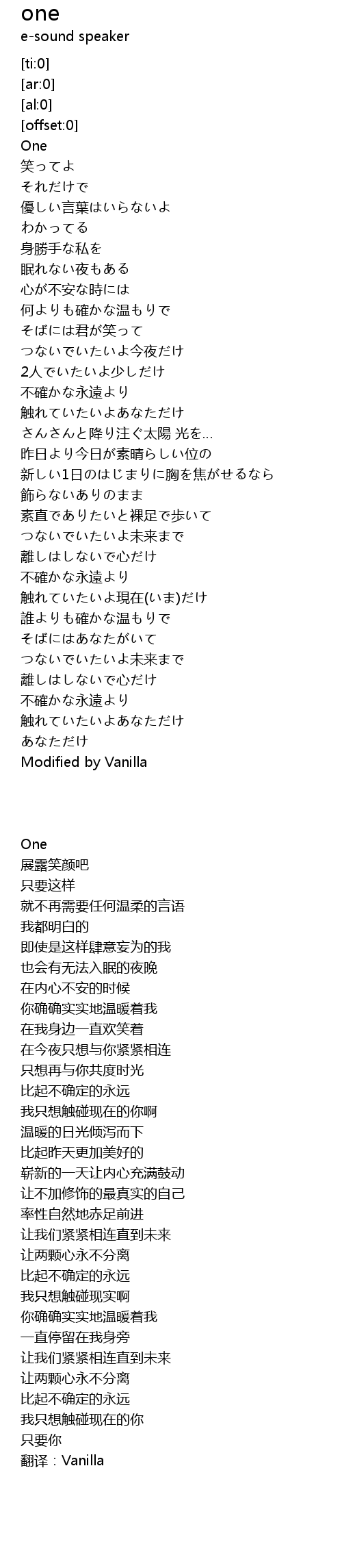 | [00:00.00] | One |