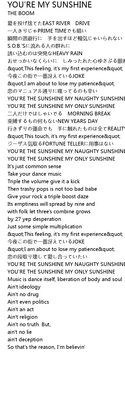 | YOU' RE THE SUNSHINE MY ONLY SUNSHINE | |