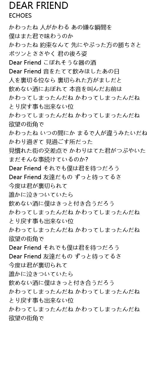 | Dear Friend 友達だもの ずっと待ってるさ | |