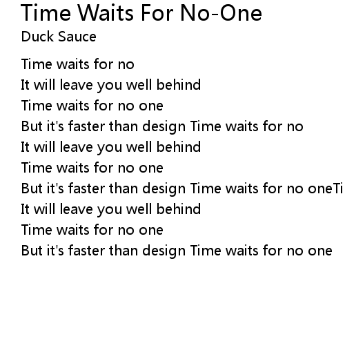 | But it's faster than design Time waits for no one |
