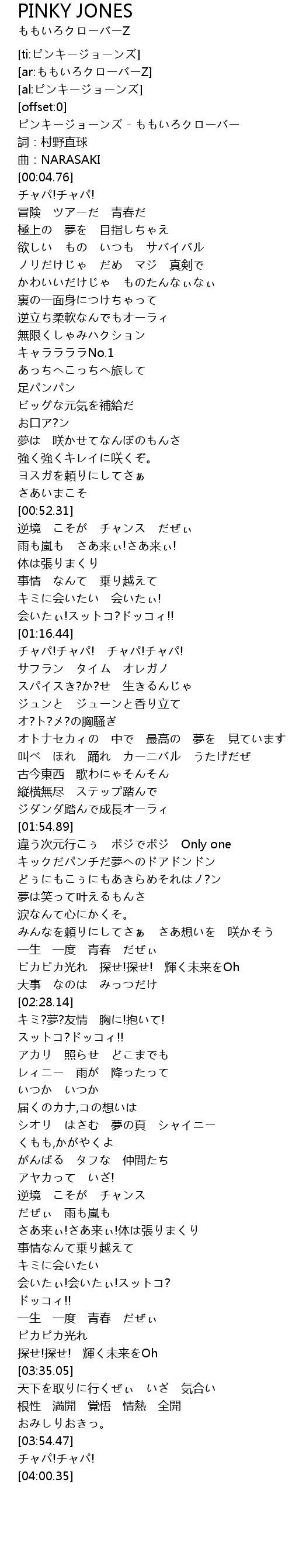 | [00:00.62] | ピンキージョーンズ - ももいろクローバー |
