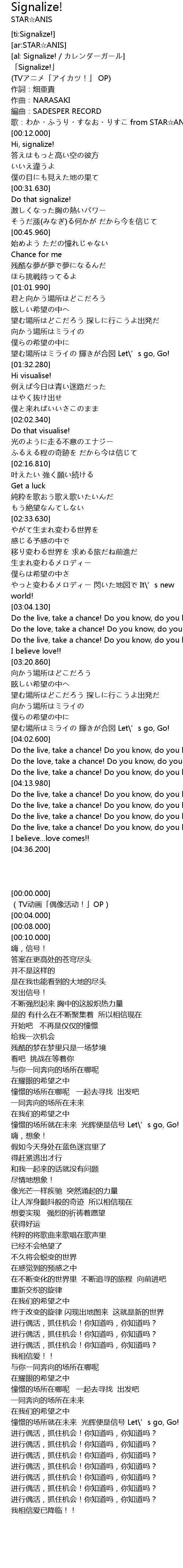 | [00:00.000] | 「Signalize!」 |