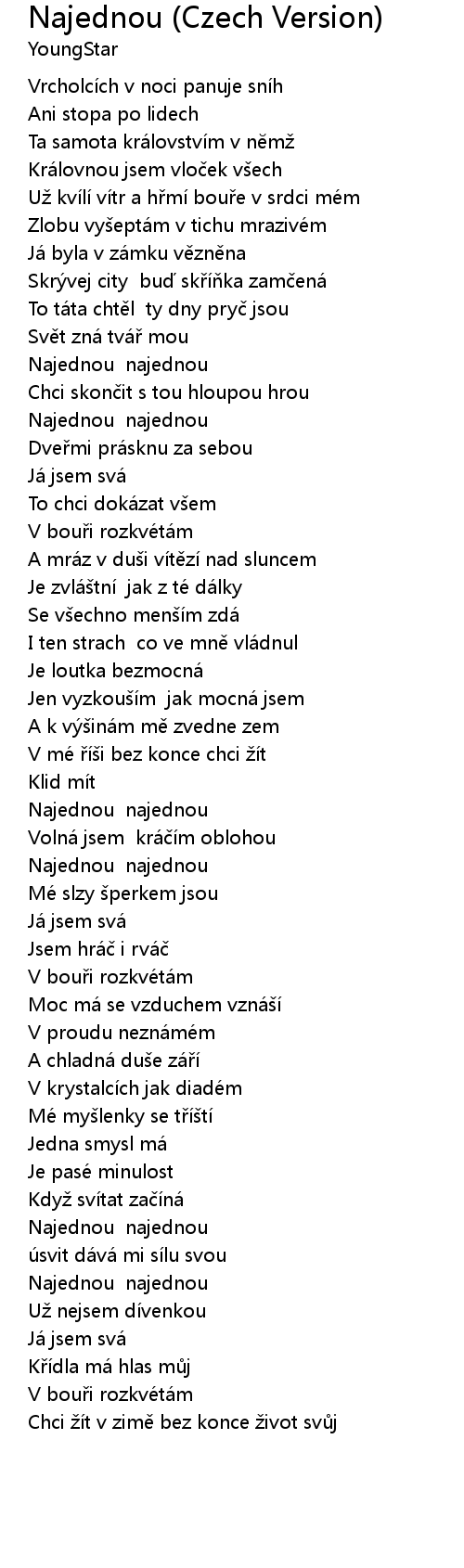 | Song | Najednou (Czech Version) |