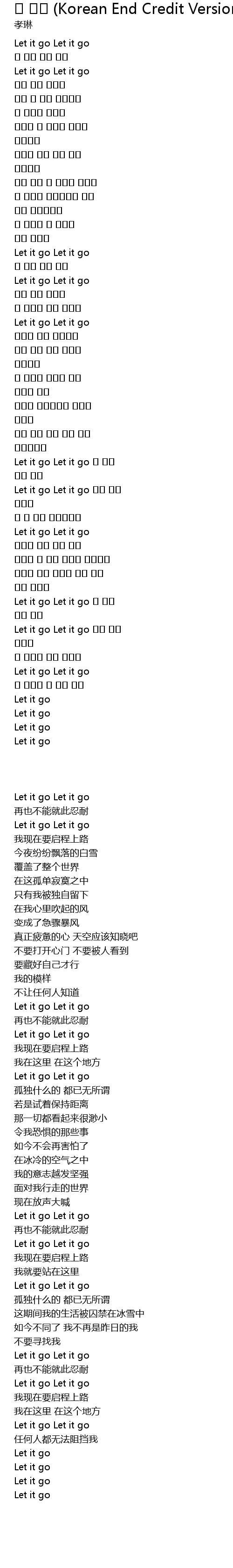 | [02:51.360] | Let it go Let it go 나는 이제 |
