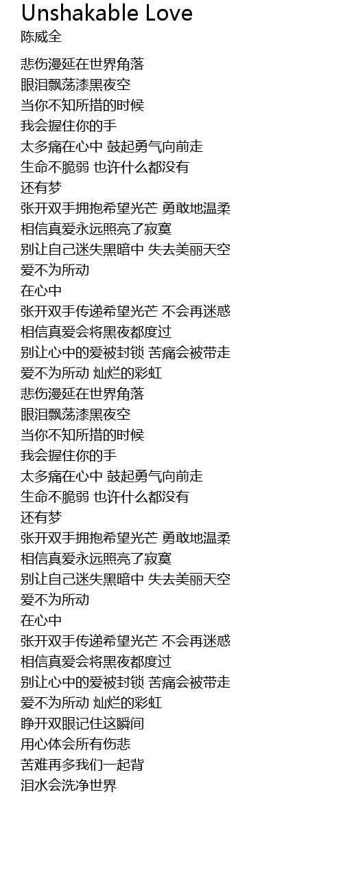 | [03:30.06] | 别让心中的爱被封锁 苦痛会被带走 |