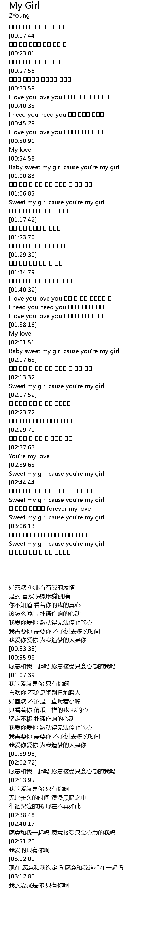 | [00:55.96] | Baby sweet my girl cause you're my girl |