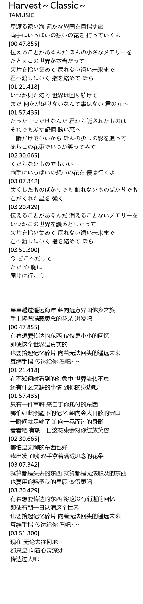| Song | Harvest~Classic~ |