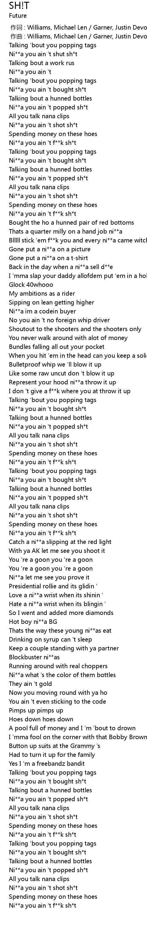 | [00:38.402] | Ni**a you ain 't bought sh*t |