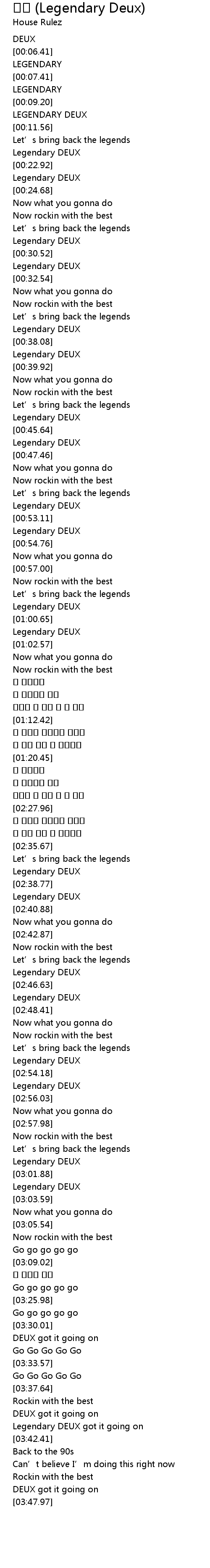 | [03:40.79] | Legendary DEUX got it going on |