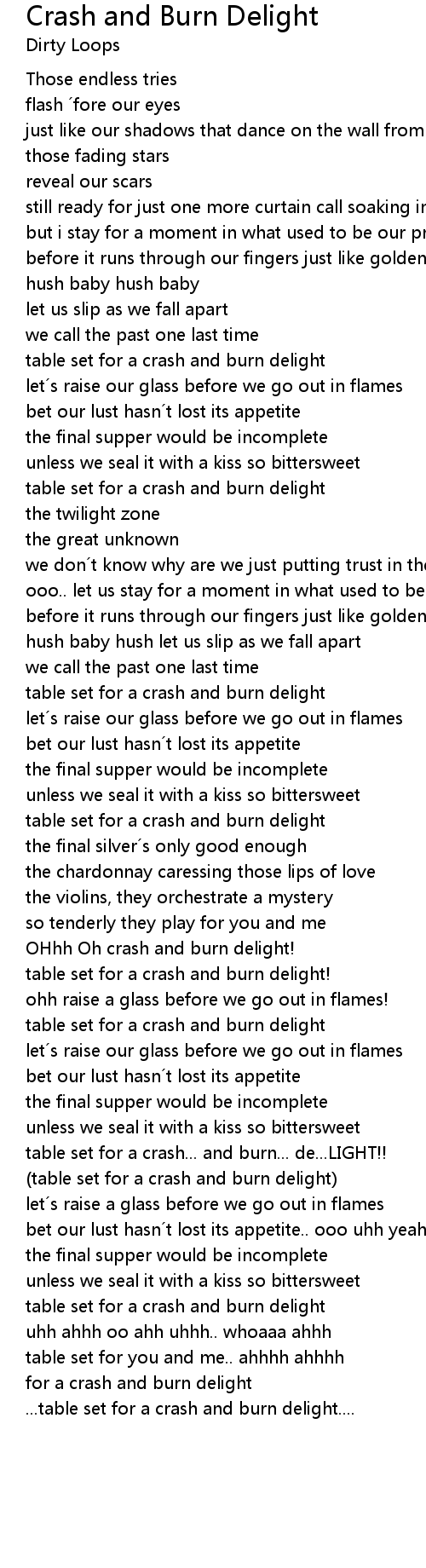 | Song | Crash and Burn Delight |