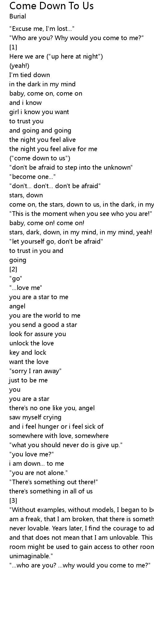 ("come down to us") |