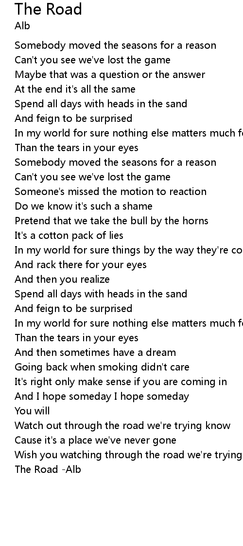 Wish you watching through the road we're trying know |