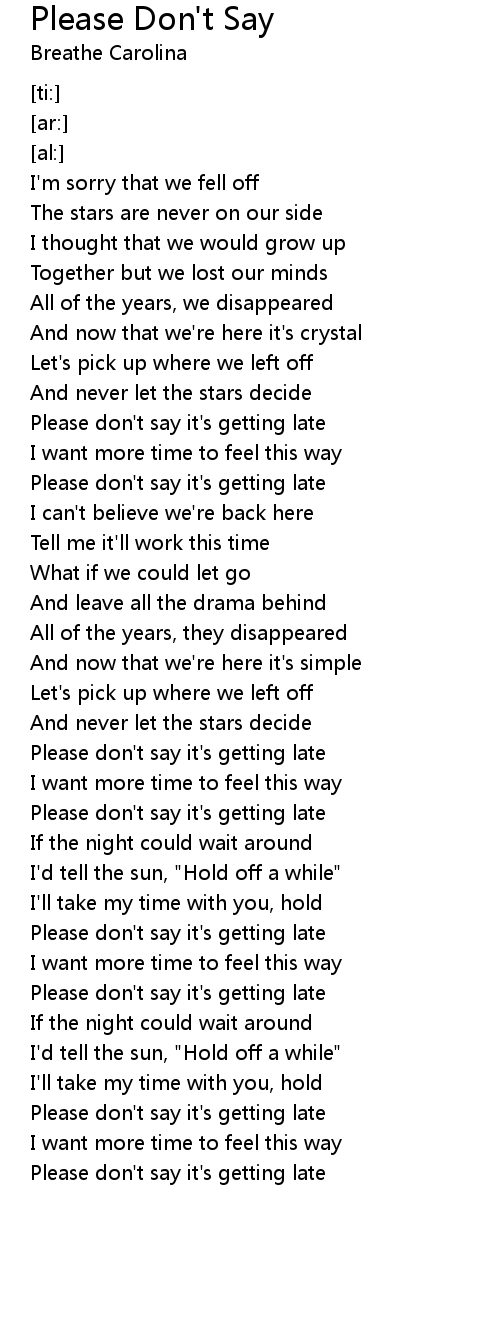 Please don't say it's getting late |