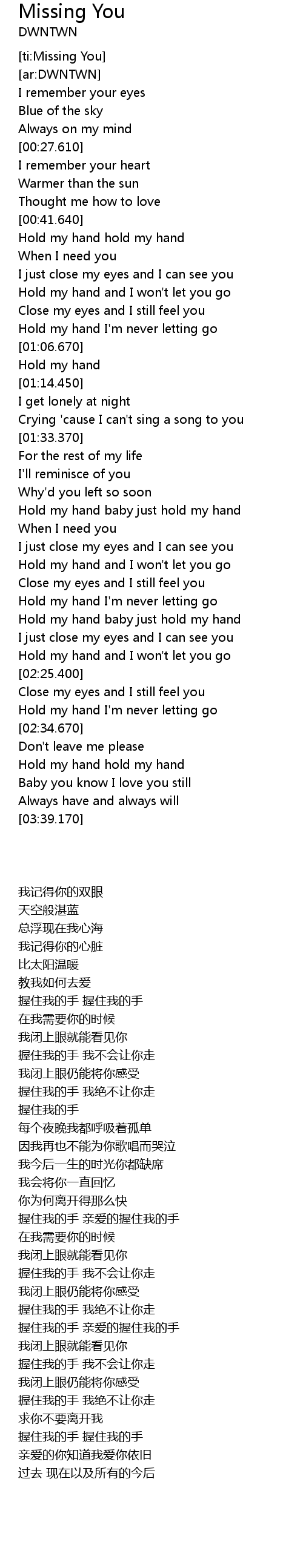 | [00:43.090] | Hold my hand hold my hand |