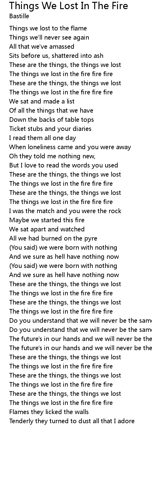 The things we lost in the fire fire fire |