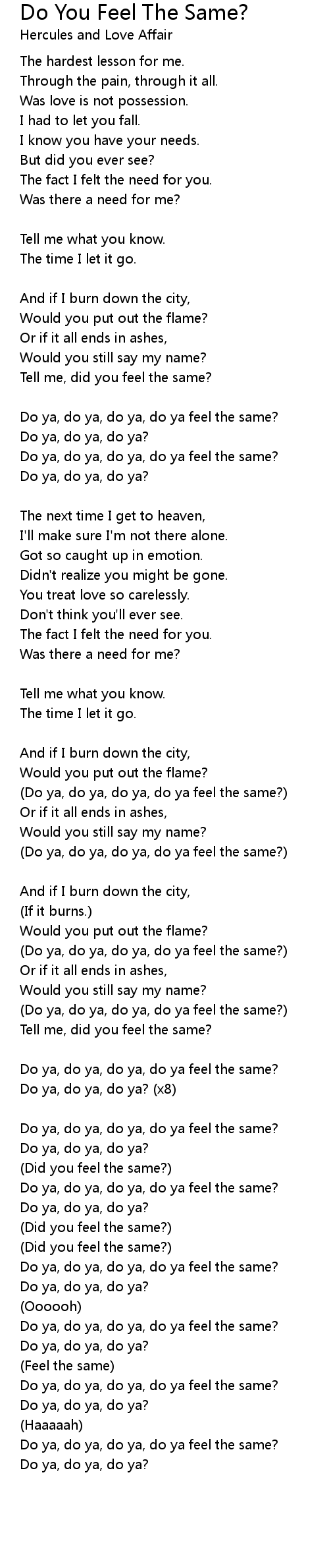 Do ya, do ya, do ya, do ya feel the same? |