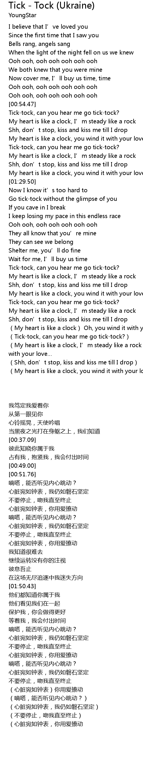 | [02:52.96] | (My heart is like a clock, you wind it with your love) |