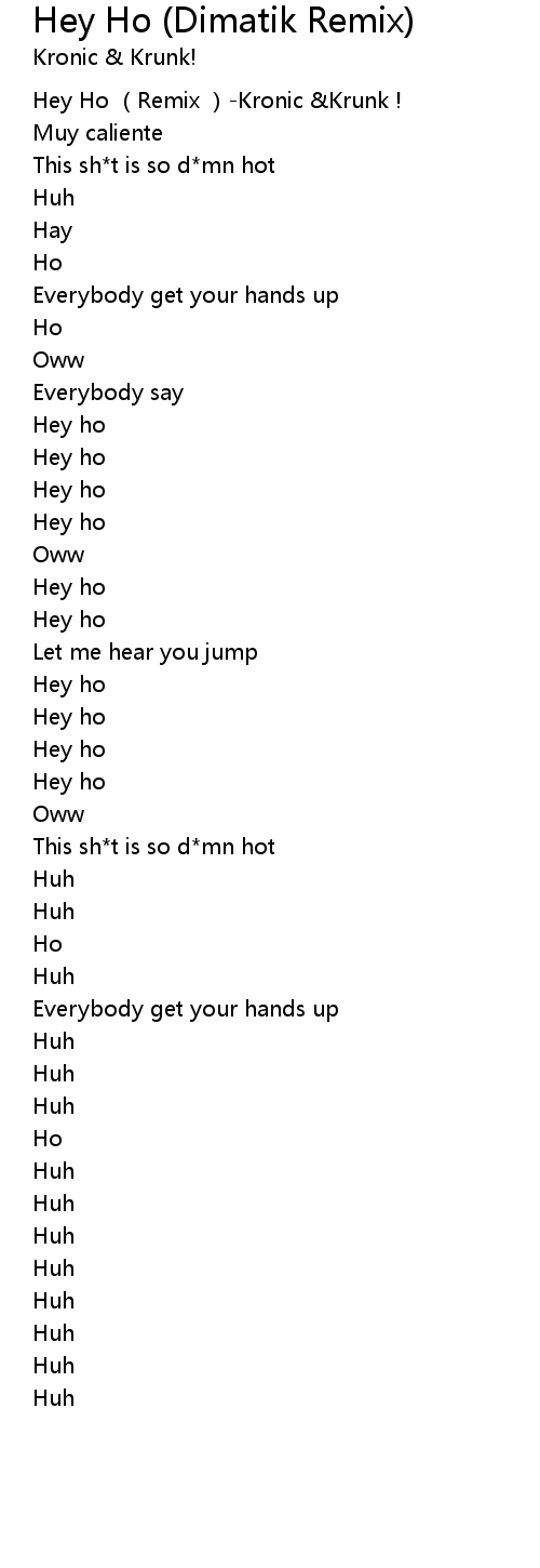 | [00:00.00] | Hey Ho (Remix )-Kronic &Krunk ! |
