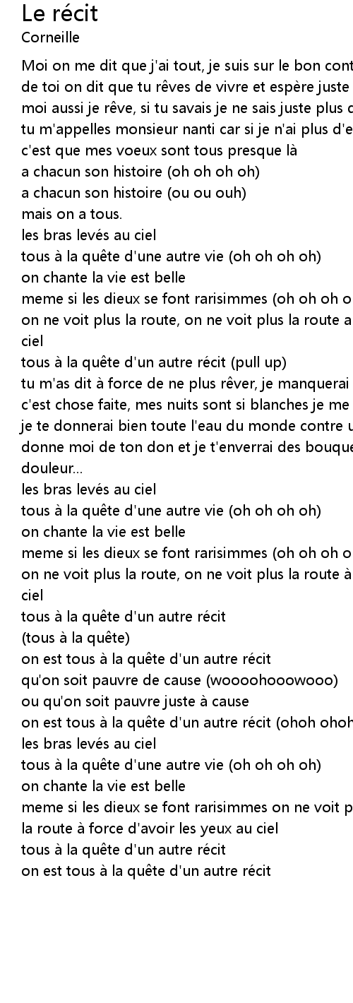| on est tous à la qu te d' un autre ré cit ohoh ohohoh pull up | |