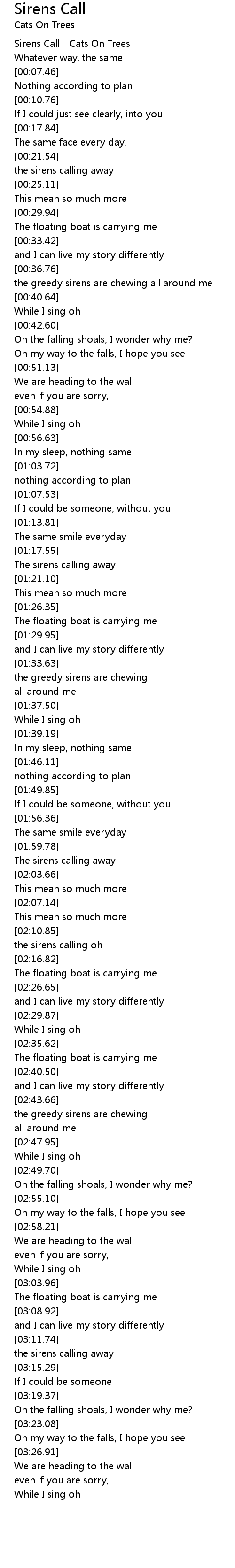 [00:00.54] Sirens Call - Cats On Trees