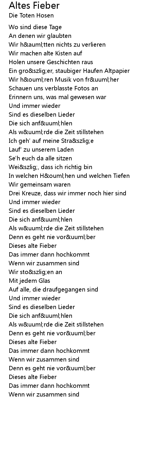 Dieses alte Fieber |