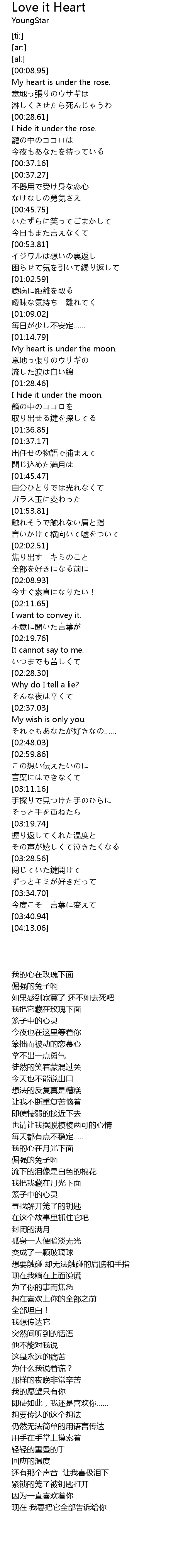 | [00:20.21] | My heart is under the rose. |