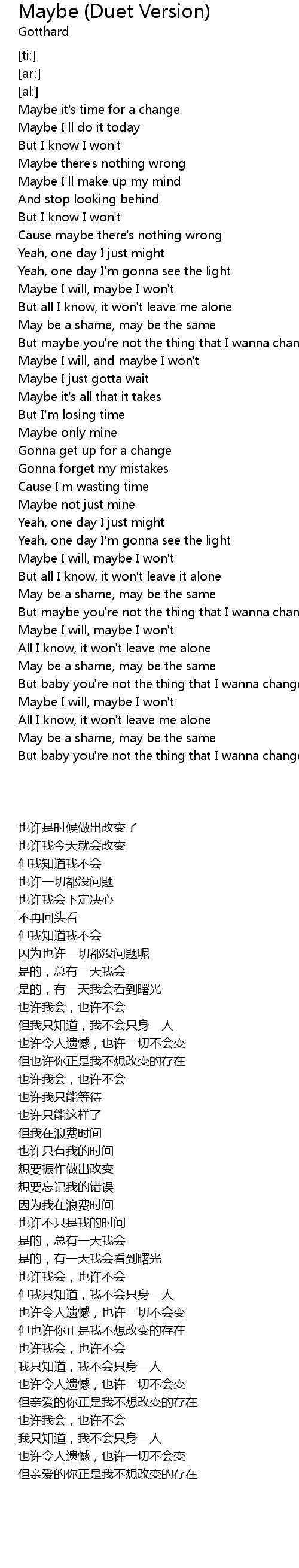 | [02:18.56] | Maybe I will, maybe I won't |