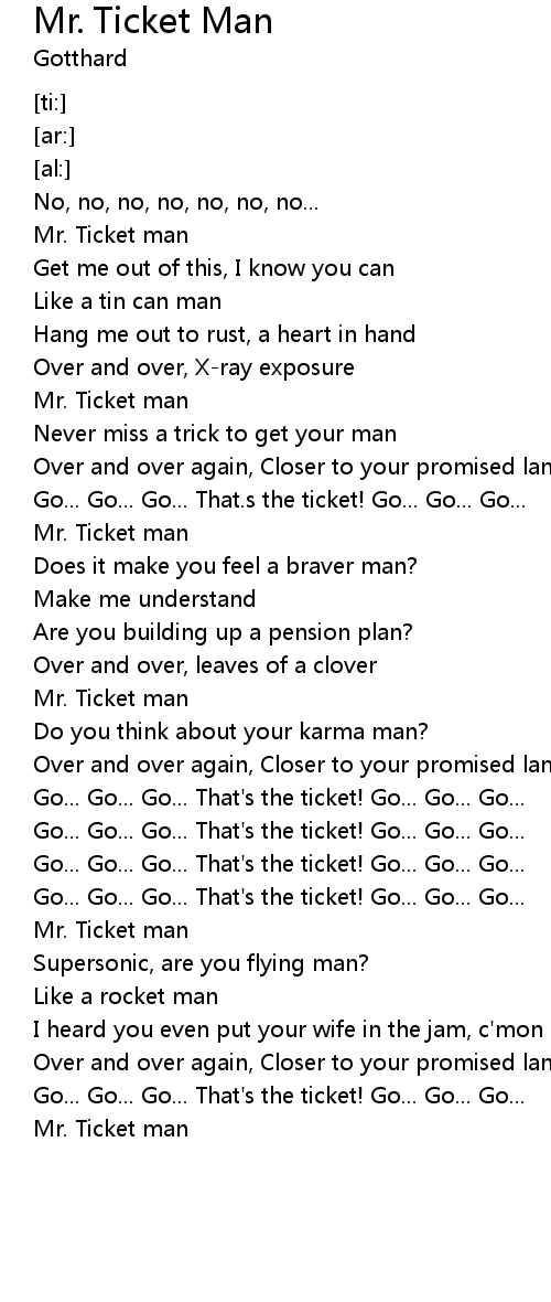 | [00:41.44] | Mr. Ticket man |