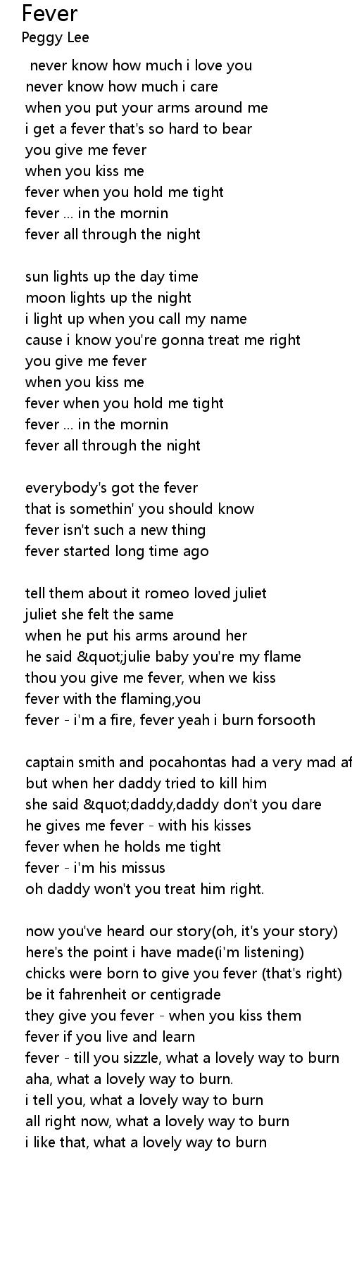 fever - i'm a fire, fever yeah i burn forsooth |