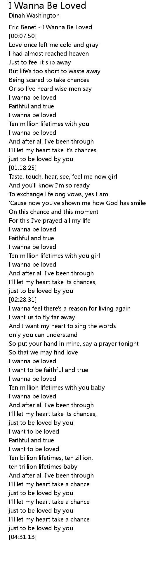 I wanna be loved |