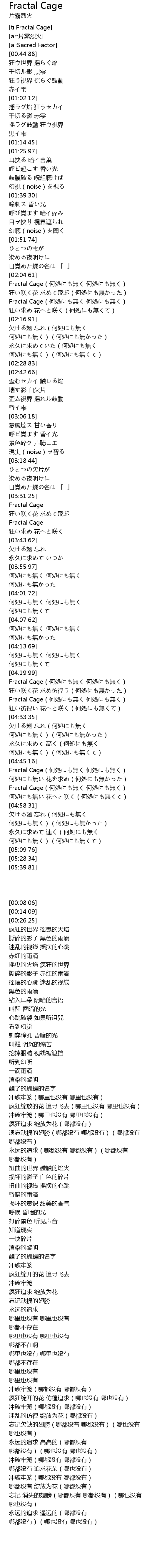 | [04:51.88] | Fractal Cage(何処にも無く 何処にも無く) |