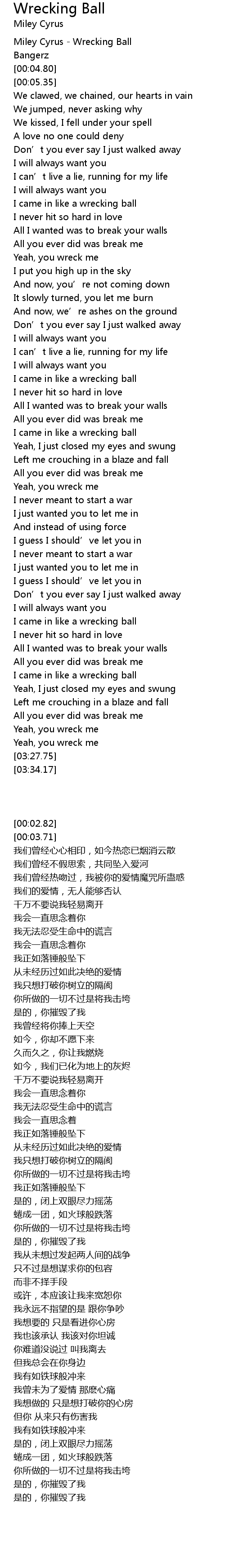 | [00:02.82] | Miley Cyrus - Wrecking Ball |