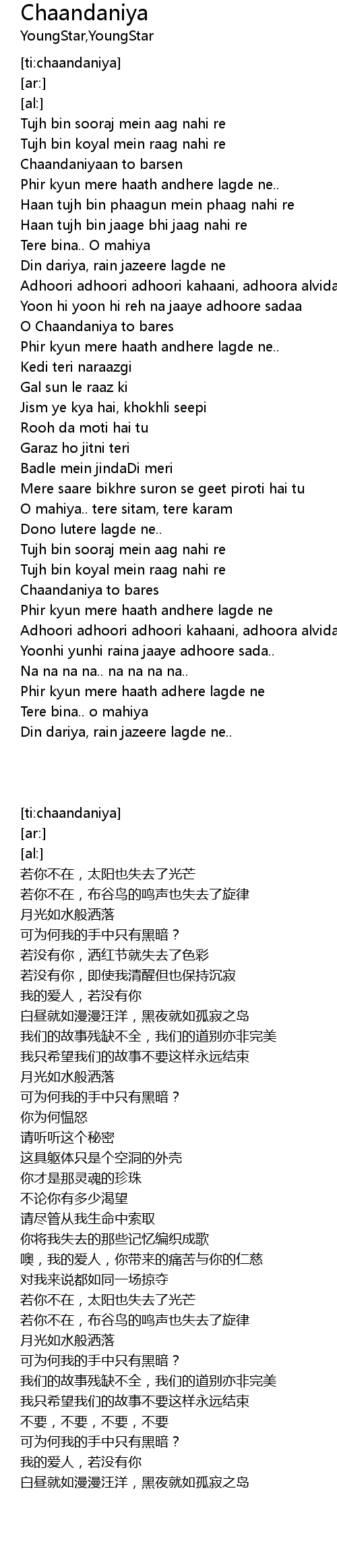 | [00:17.72] | Chaandaniyaan to barsen |