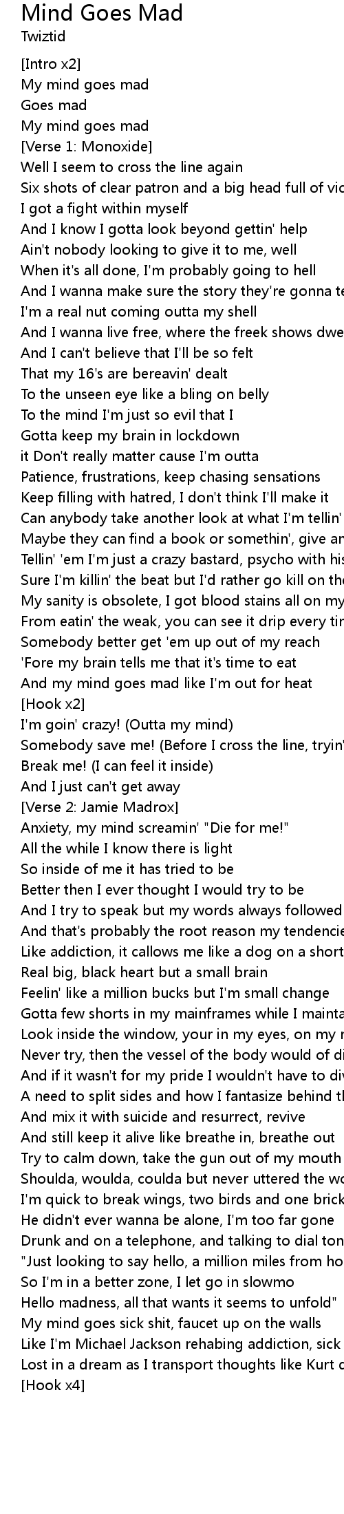 My mind goes mad |