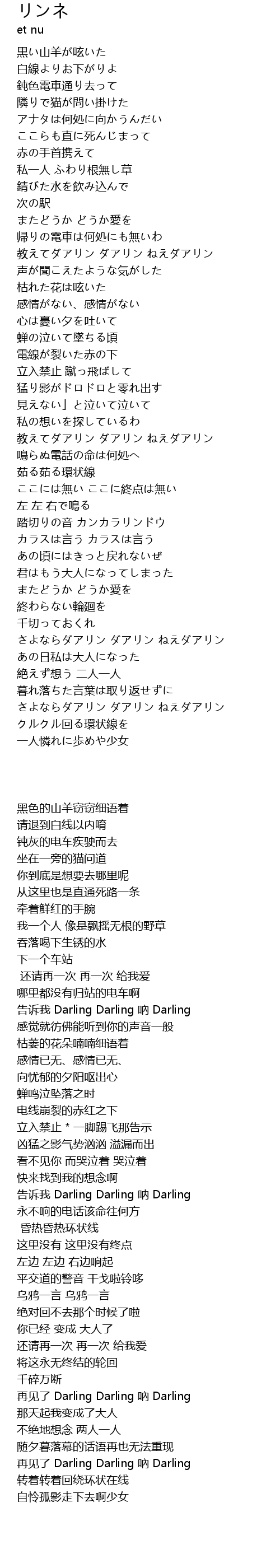 | [01:06.71] | 教えてダアリン ダアリン ねえダアリン |