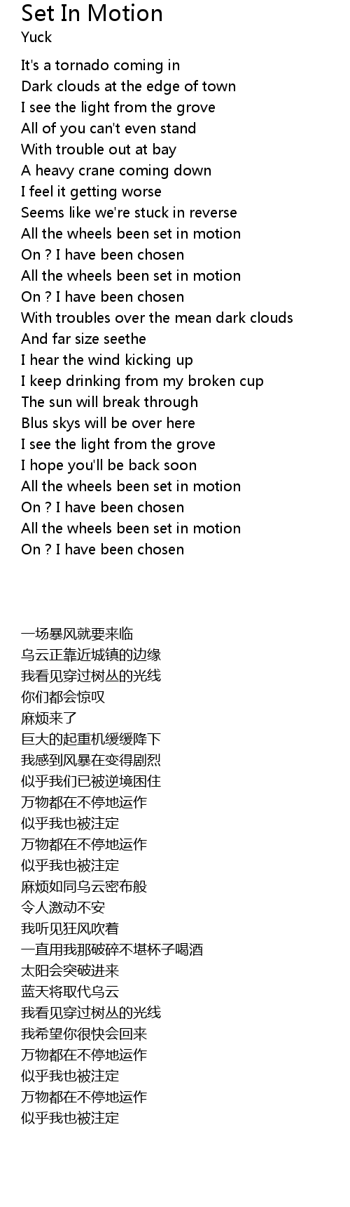 All the wheels been set in motion |