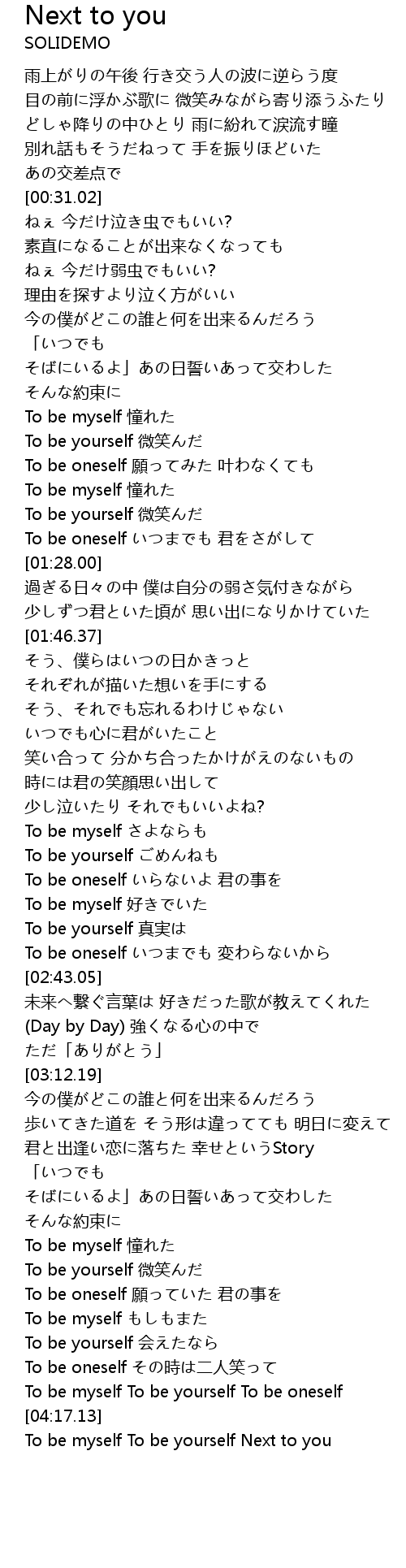 | [04:09.72] | To be myself To be yourself To be oneself |