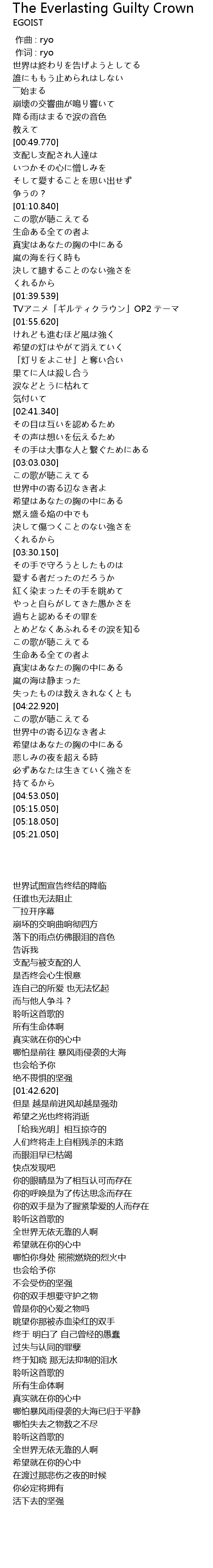 | [01:42.620] | TVアニメ「ギルティクラウン」OP2 テーマ |