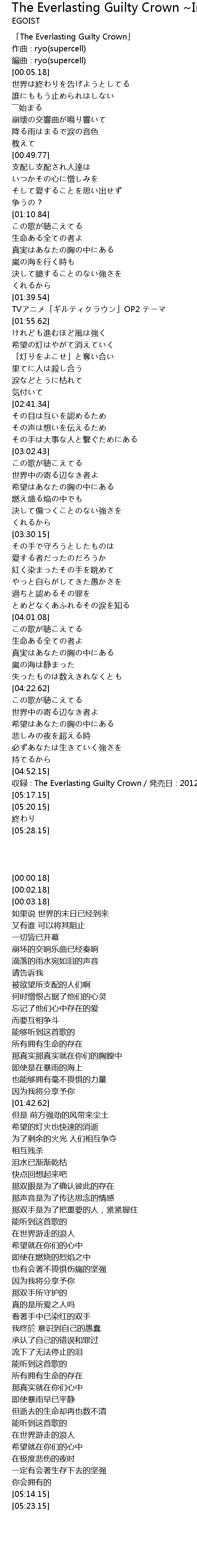 | [00:00.18] | The Everlasting Guilty Crown |